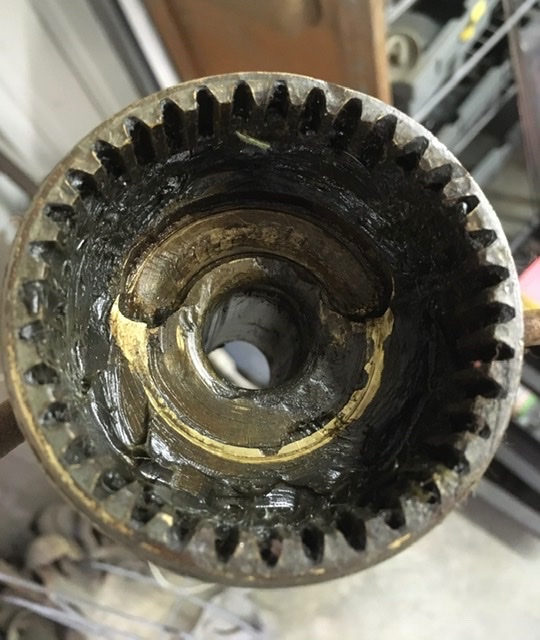 Just a note, FYI, had a fellow call me on trouble fitting new 5:1 gears to that new 5:1 repro post shaft. After several advise attempts, like lapping the gears, etc. , he found that the welded on upper plate of the repro shaft had just a slight tilt to that platform that holds the 3 pinion posts.