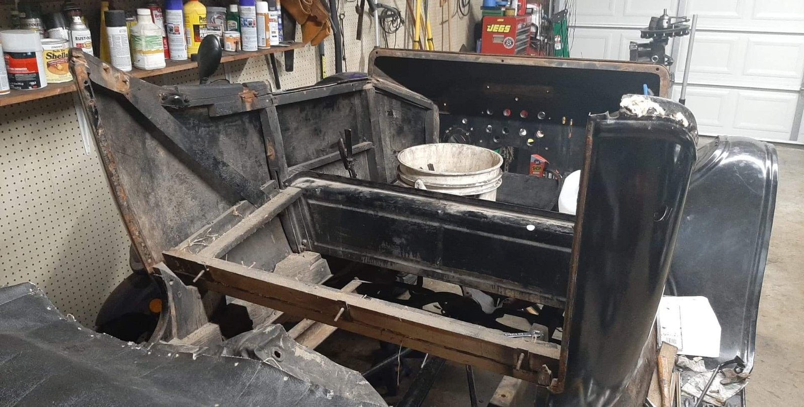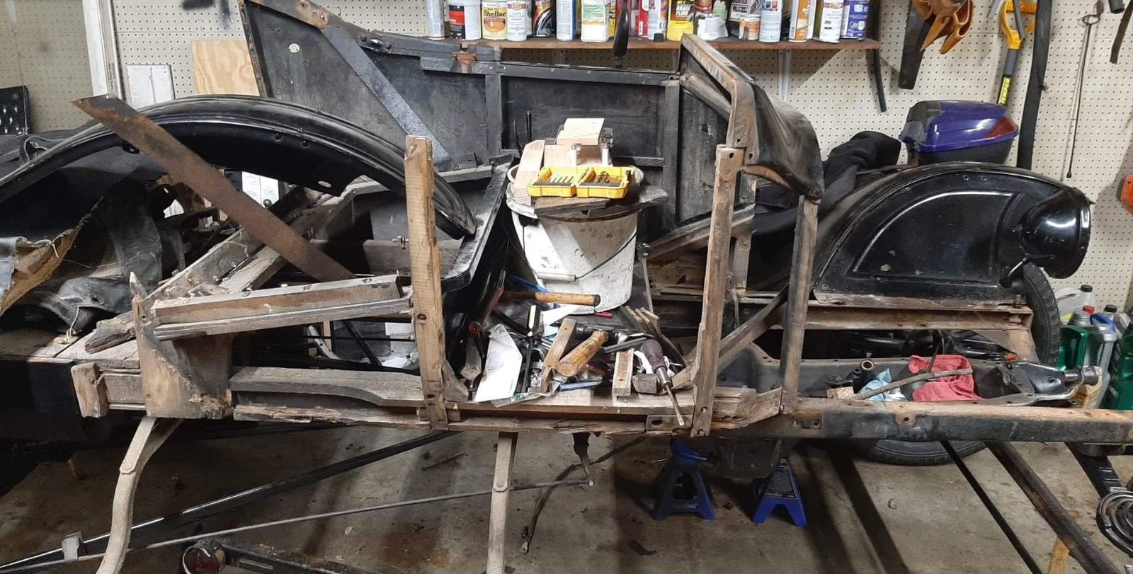 I bought a low cowl wood firewall 23 runabout in July of last year. I realized early on that the body wood was going to need some help but I've been putting off rewooding the body because it's a major undertaking. Throughout this last week I fully disassembled the body. There is literally not one piece of original wood that can be reused. It all must be replaced. I have most of a wood kit for the car and reached out to another forum member who offered to send me an article detailing the rewooding process of a 23 runabout. My main concern is how I should go about determining exactly where the vertical woods posts should be mounted. I have the original body stills and the sheet metal to use as a guide, but any advice or knowledge that you can offer would be appreciated.
