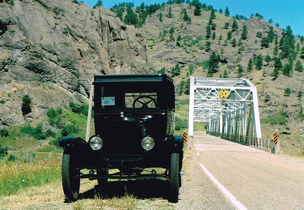Today another stone arch bridge. This one is on Timber Creek at Floral, with Ed Emerson crossing in his 1926 touring.