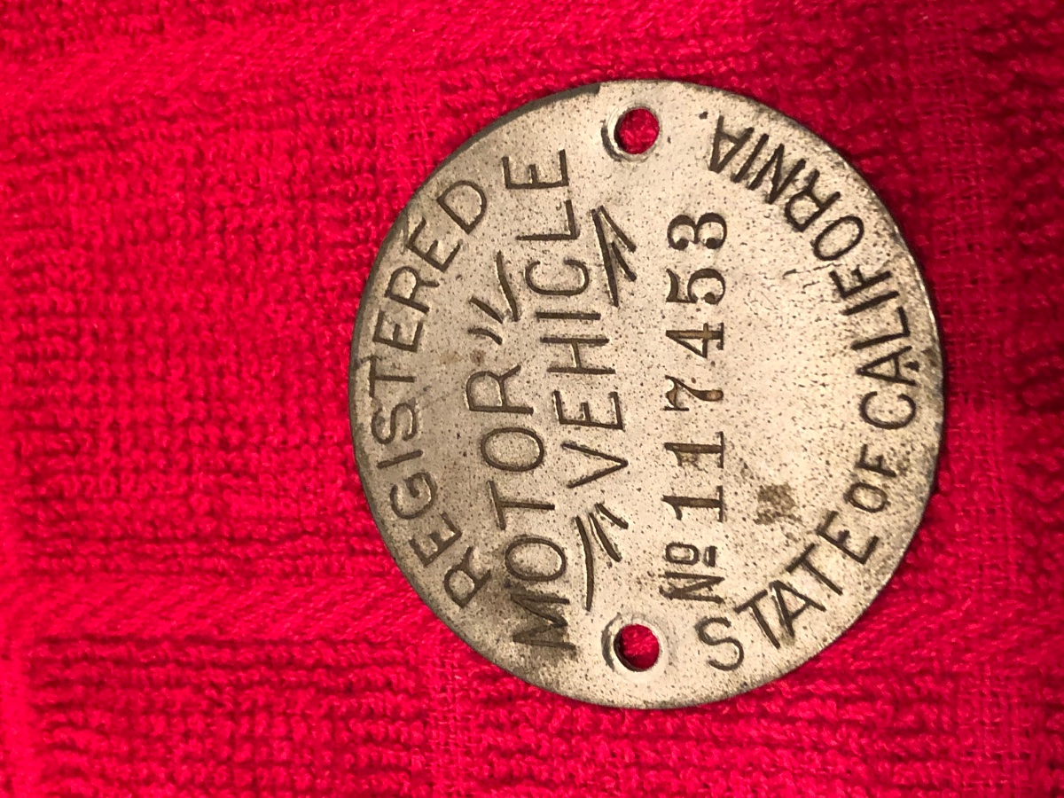 California 1913 I have with ad for a “number plate” on the back