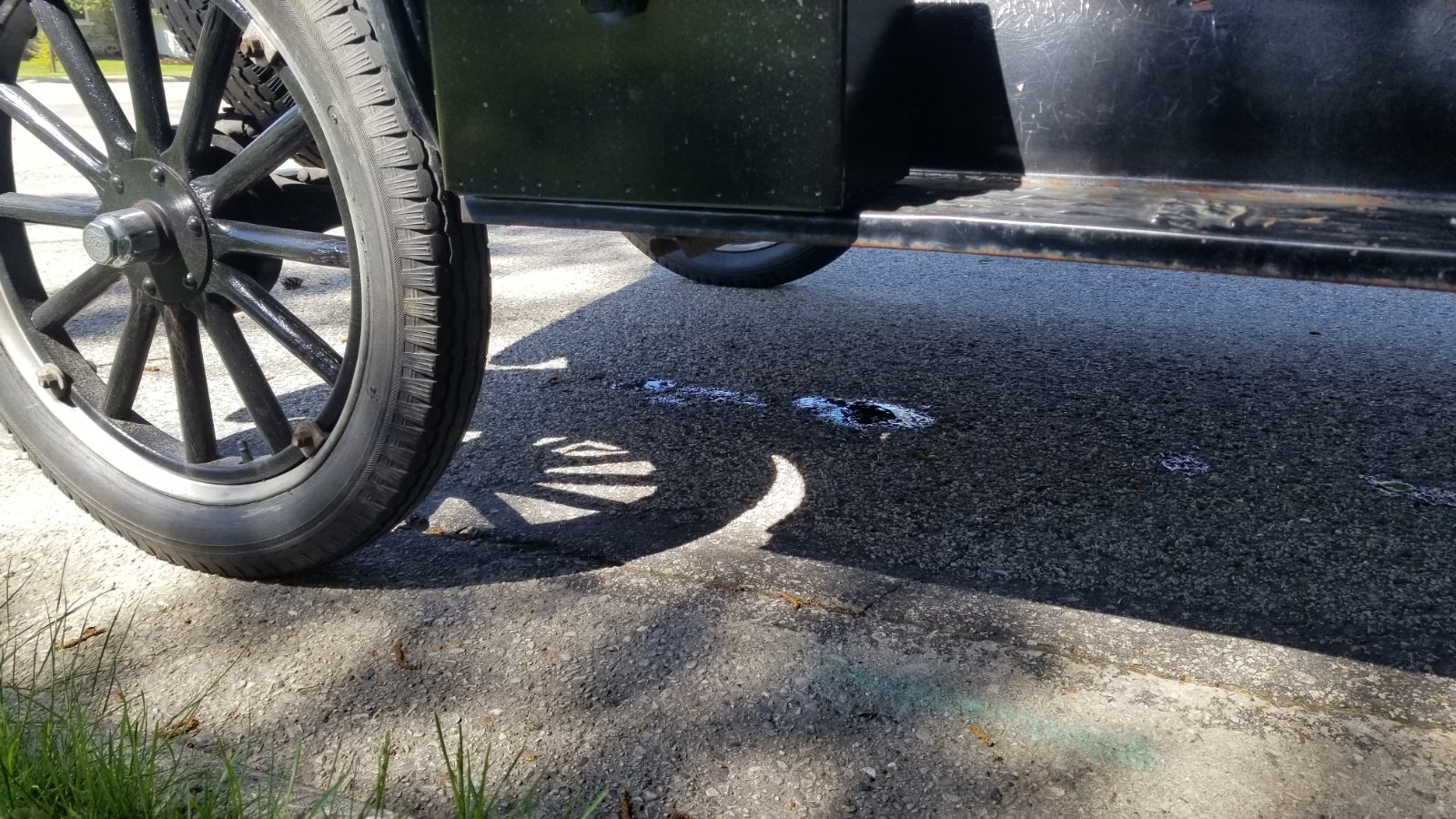 I have now daily driven the car about 20 miles for the last 2 weeks. Oil level has stayed consistent. No coolant in the oil. But I have a persistant and what appears to be excessive amount of oil/lube dripping out of the hole I drilled in the driveshaft tube. To me it seems way more than the amount I may have overfilled it. This is a picture of how much drips out. This is 2 trips worth. Could that much lube push UP the tube and out?