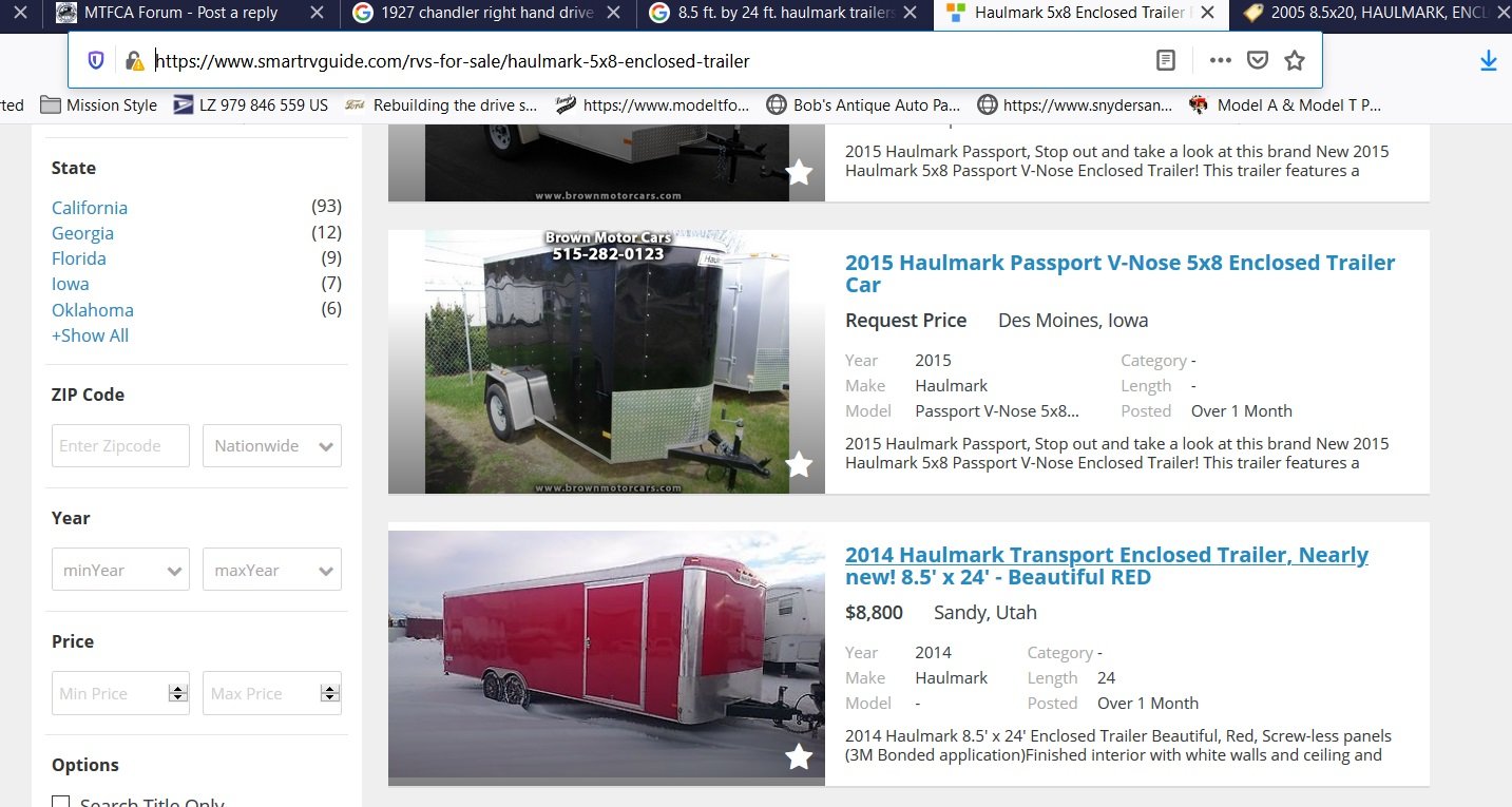 Thanks for pointing out the details about the trailer. I missed that in the description above. The "style" of the trailer came in multiple lengths (16,20,24,28) and was offered from about 2014 - 2020 and colors Red & Maroon as shown. Not sure if the AACA posting of Dark Red / Maroon means Maroon or some uncertainty on which it is. Too many uncertainties to search on.BobD wrote: ↑Sat May 16, 2020 12:27 pmTRDxB2, the trailer pictured is not the owner's trailer. He didn’t have a picture of the trailer and pulled one off the internet for reference.