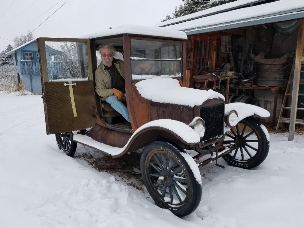Richard, you must be light on your feet, I see no tracks in the snow but I see you in the coupe. Maybe its a painting? Maybe Joy made you sleep in the T? At any rate, I like to see your adventures in that little tuff coupe!