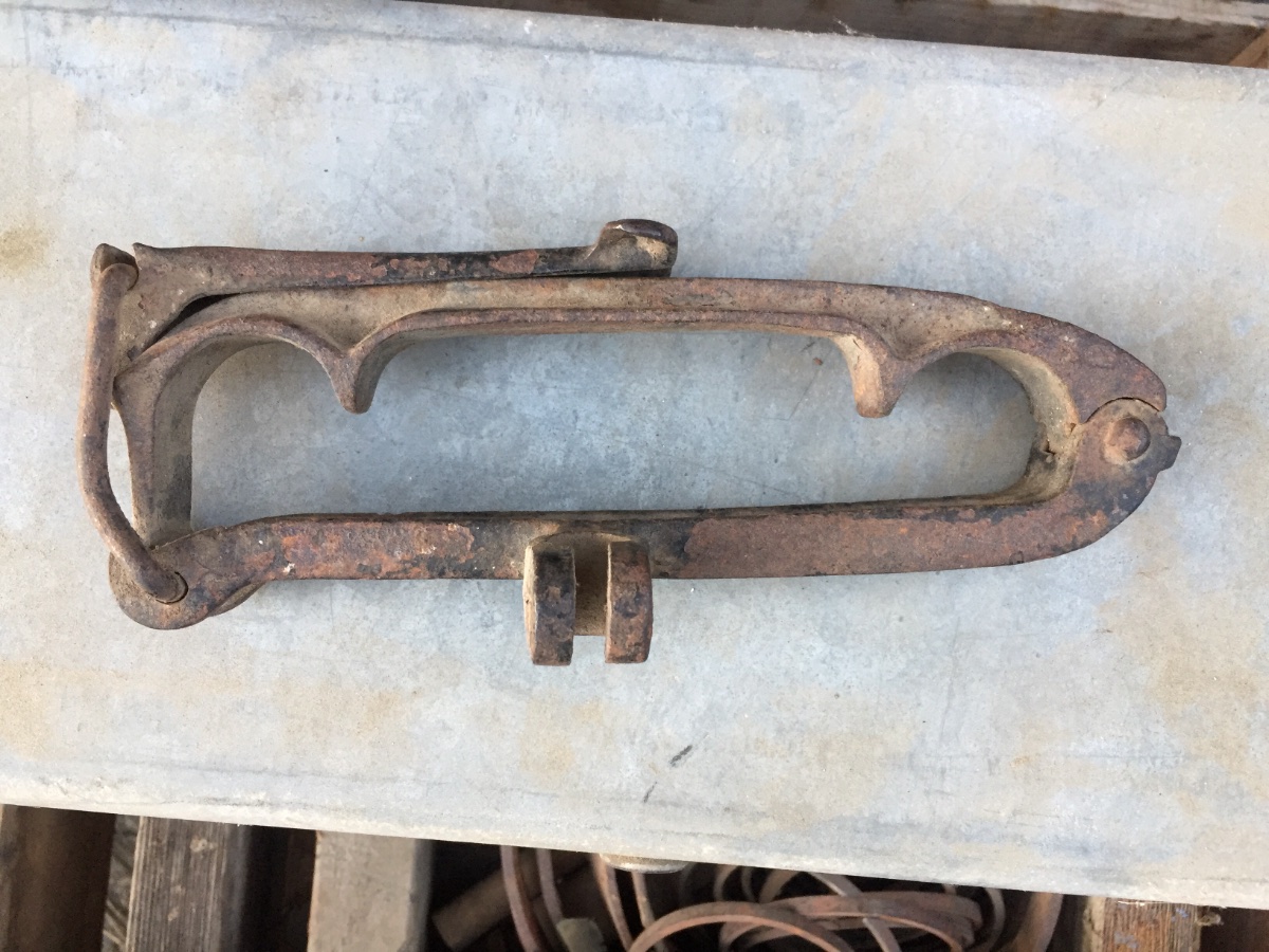 All of these separators carry a casting #, and have found that left and rights mate have that same #, so there must be a list somewhere someplace of what casting number for what car? Maybe only the mfg. Bair had such a list. Automarkers, like Ford Canada, didn't mfg these, they just used suppliers like Bair. The styles were many, two, three, four and five bow, and offset, dropped and raised mounting post clamps. Finding a matched pair takes some time.