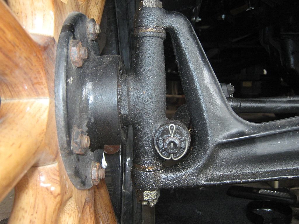 Luke, It would appear that your car does not have the later front spindles, I've heard that the very early improved cars came that way. In the picture the gray one is the improved lowered one. Jim