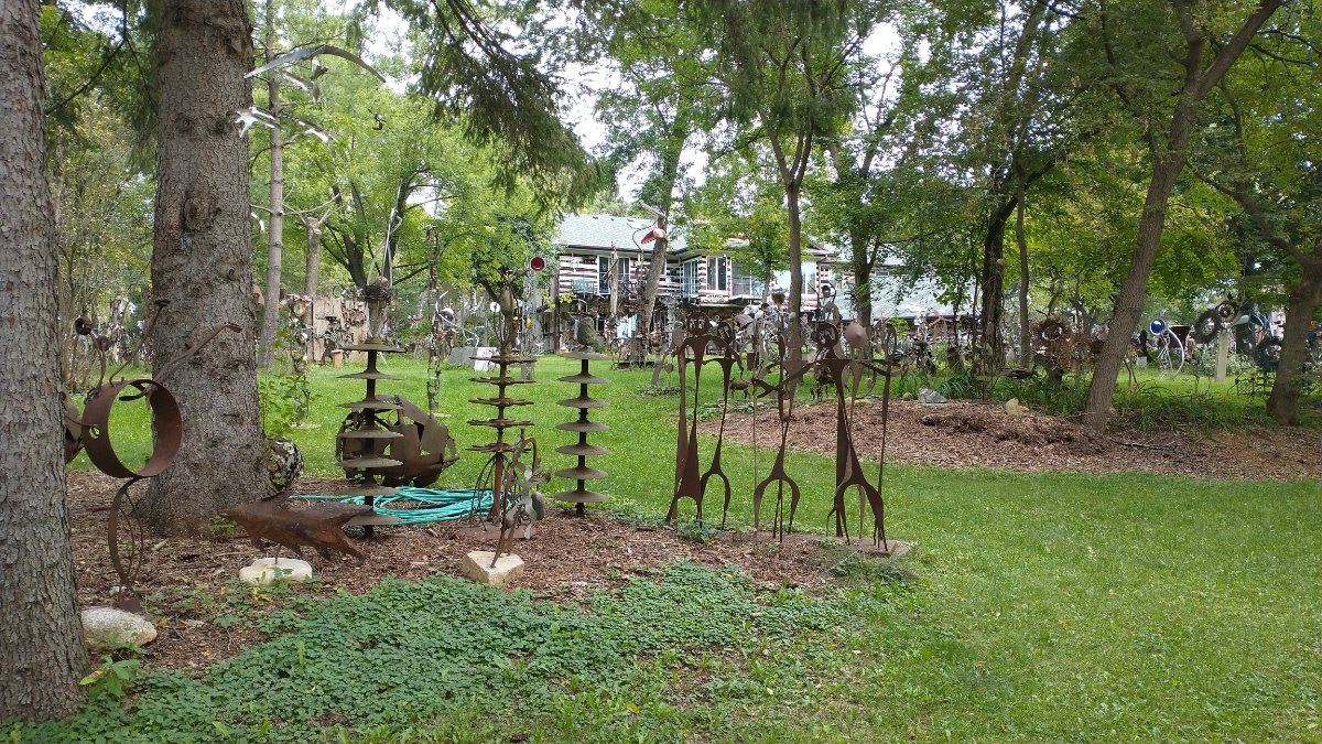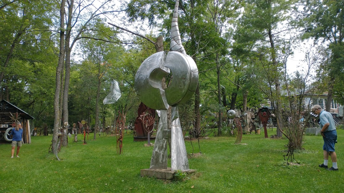 We then headed north amid corn fields and soybean fields through the rolling countryside west of Milwaukee. Wisconsin has what are called 'Rustic Roads' which I meant to be driven slowly so you can enjoy the scenery as you drive by. We arrived at a location marked with a sign that states Spectacular Sculpture. I have seen these signs where I live and a friend finally took me there. Wow, I think it is pretty cool. A man and his wife have created a few sculptures and placed them among his property. You can drive in his driveway in a loop, or you can park wherever you like and walk through the display.