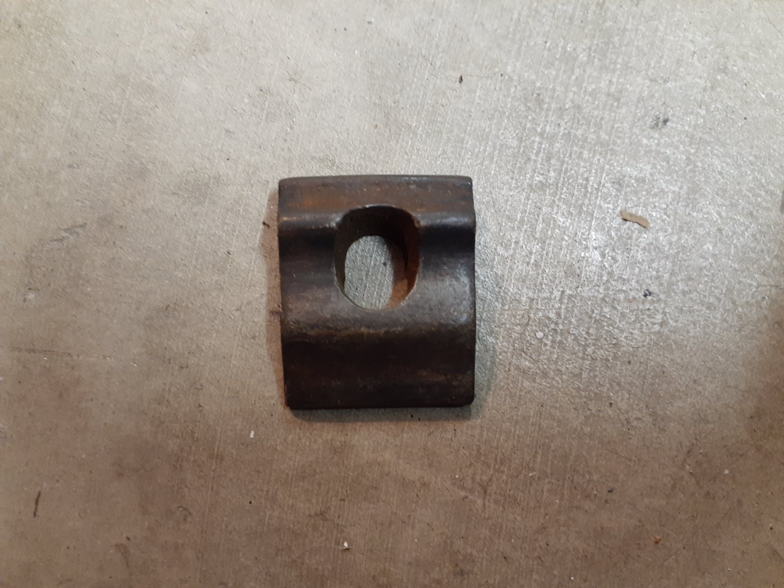 I have a bunch of these that were with a large box full of Model T wheel parts. I'm no wheel expert. I've done some research; however, I still can determine the manufacturer or application. There are no markings to provide a clue. The clamp measures 1 1/2" tall and 1 1/4" wide. The elongated hole in the center measures 3/8" across. Any assistance appreciated.