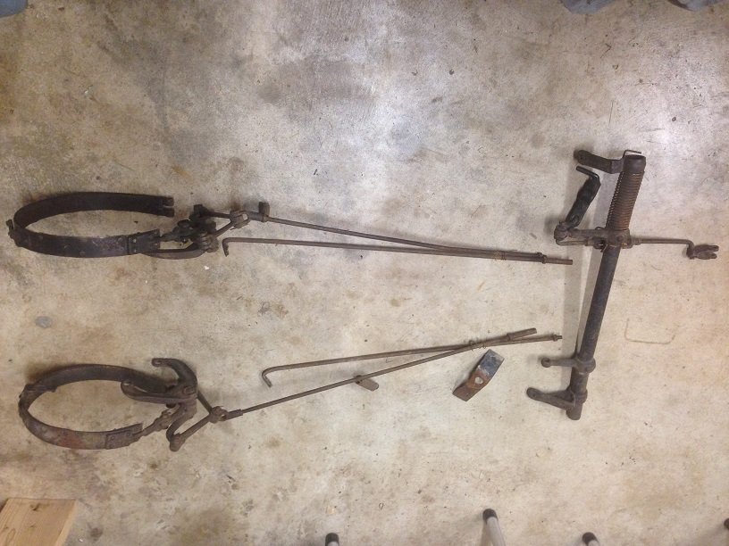 I posted these in 2017 or so, but no one had seen them before, so I thought I'd try again. I've searched Google patents, internet images, the forum, Kenealy's accessory books, old catalogs, etc. and haven't been able to identify the manufacturer of these brakes. Any ideas?