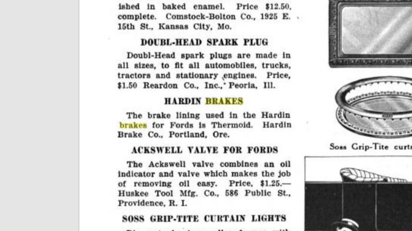 After I saw the Hardon Brake Co Portland Oregon as the makers I googled that and came back to the same publication you show the ad for;