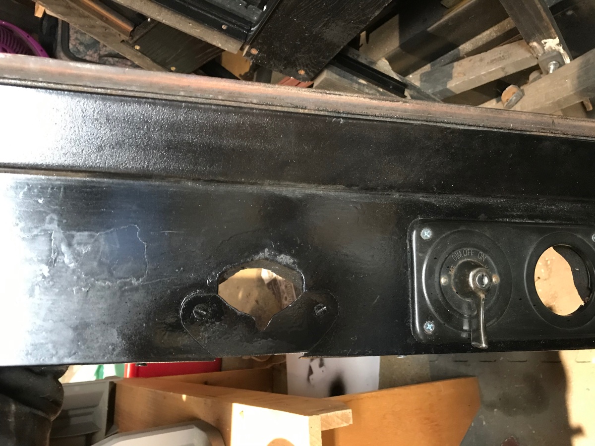 Here’s a tenon that I installed where it should be. The pillar had been sawn even with the sheet metal.