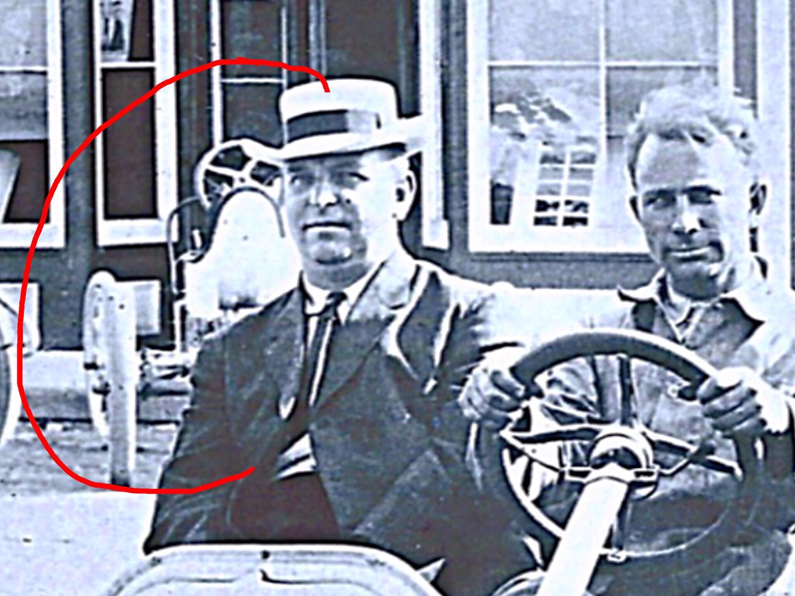 There are a couple things I cannot identify. And they could simply be flaws in the photograph. One almost looks like a "steering wheel knob", sometimes referred to as a "lovers knob". The steering wheel appears to be a polished brass spider. There also appears to be something standing up near the right side of the firewall. Could simply be something set there leaning against the firewall. It almost looks like it could be a speedometer. However I think not. Too high to be easily seen by the driver, and the shape doesn't look like it when I zoom in.