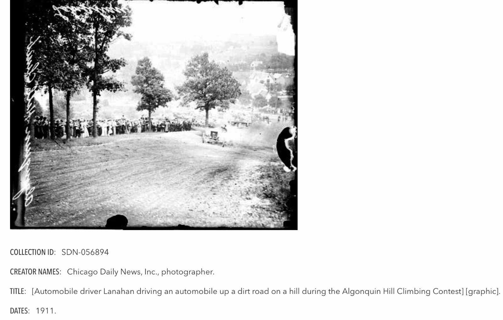 Thanks Dan. The big gas tank was throwing me. I have another photo showing Frank Kulick driving a Ford up Algonquin (1911) with a much smaller tank. It also looks closer to a stock size motor from the side view. However, maybe he was driving the other smaller Ford (driven by Gruener in the Hill Climb) during practices.