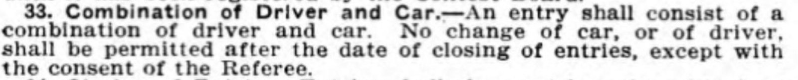 A.A.A. RULE 33: COMBINATION OF DRIVER AND CAR