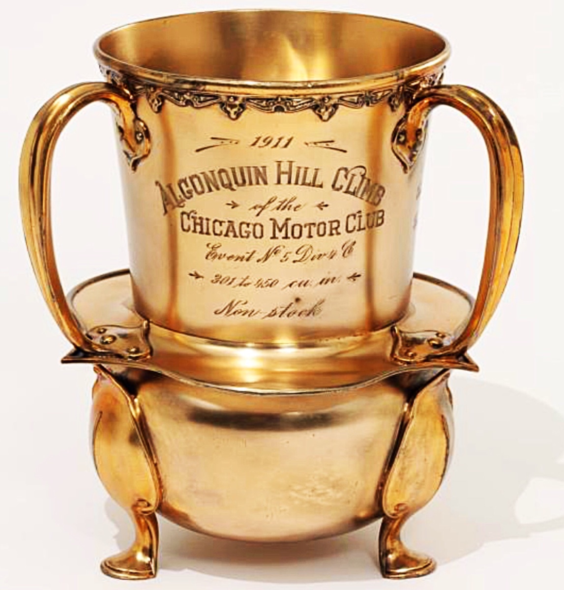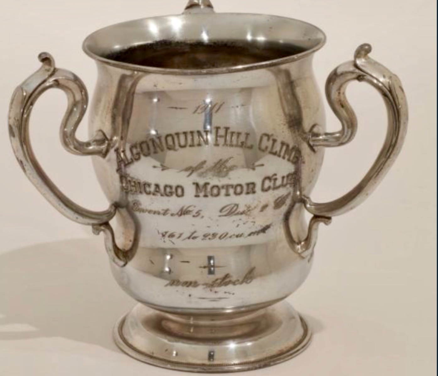 Two of the cups fro the 1911 hill climb, off display at The Henry Ford.