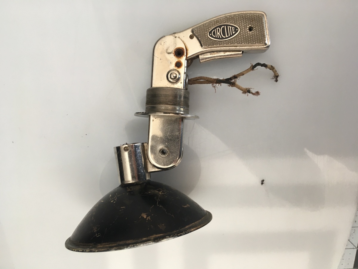 I was able to slide the round section toward the bulb with a fair bit of force to reveal that one side of the casting is two pieces. I think after grinding and pressing out the rusty pin between the switch and hinge I’ll be able to separate the halves. I’ll post pictures as I go in case anyone runs into this again.
