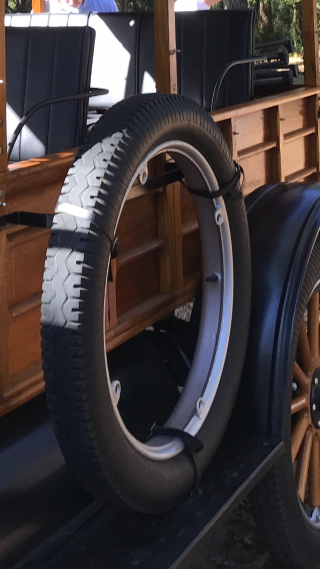 A word of caution on the rims: eventually they were all made interchangeable, but this was not always the case. I can't tell from the pictures whether your rims are Hayes, Kelsey, Firestone, or Ford, but you may need to get a spare rim of the same make to fit your wheels. Another factor to consider is that the wheels on your car may not necessarily be the right ones for 1923. Over the course of 90+ years many of these cars have have acquired the "wrong" wheels. I would determine what the other rims are, and find a spare rim to match. This is not as difficult as it may seem, especially if your other rims are Hayes. Those are most common, and not hard to find.