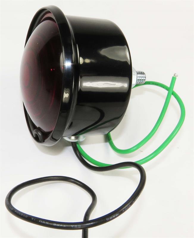 Appears the Lang's repro black metal cup, with red glass lens tail lamp is wired for a double contact bulb, i.e. that type bulb isn't grounded to the socket thru the bulb casing. One wire is hot the other is ground to illuminate the single filament bulb.