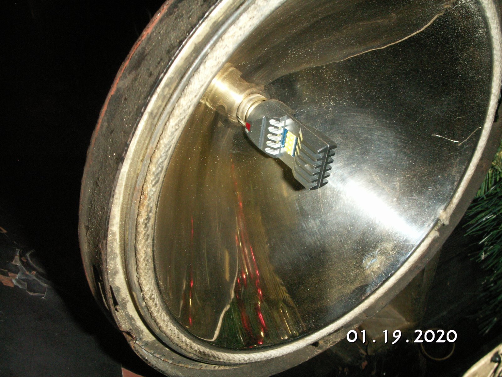 Good to know the vertical Ford H lenses cast an odd light. I have a spare set of plain clear lenses, but wouldn't want to install them since the LEDs will be even more obvious when not in use. All good insight. Below is an image I shot last summer when driving home late from work using a standard 6v lightbulb - not bad.