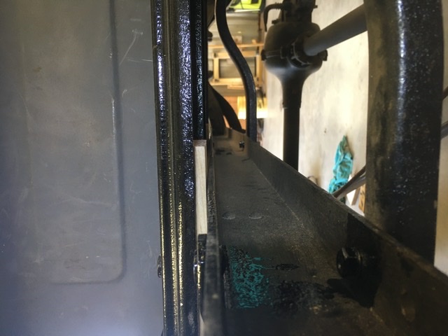 Asking this question again in this same thread, hopefully folks will read down to here. Here’s a few picts of the new body blocks under the body subframe, showing how high the body frame sits above the chassis. Should these blocks be sanded down to close this gap? Should the blocks actually be sitting on the chassis as well as the chassis mounting ears? I guess it shouldn’t sit down far enough to have the body frame member touching the running board bracket, so the block should hold it up proud of that?