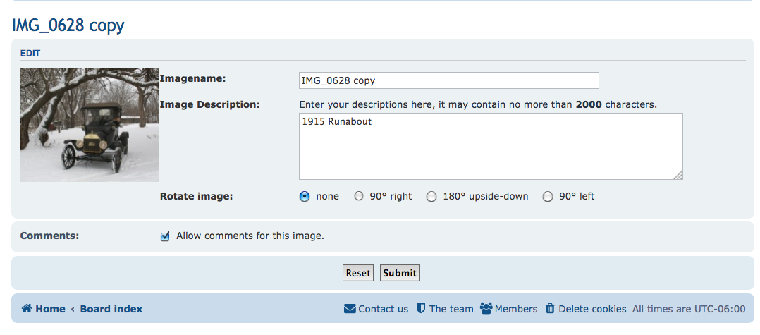 The Gallery has some wonderful pictures of members' cars, but there aren't very many. Most of them were posted soon after the new forum went up last year. If you haven't posted a photo of your baby, why not make that a little project? With this software you can use a nice, big, high resolution picture and won't have to resize it unless it's unusually large.