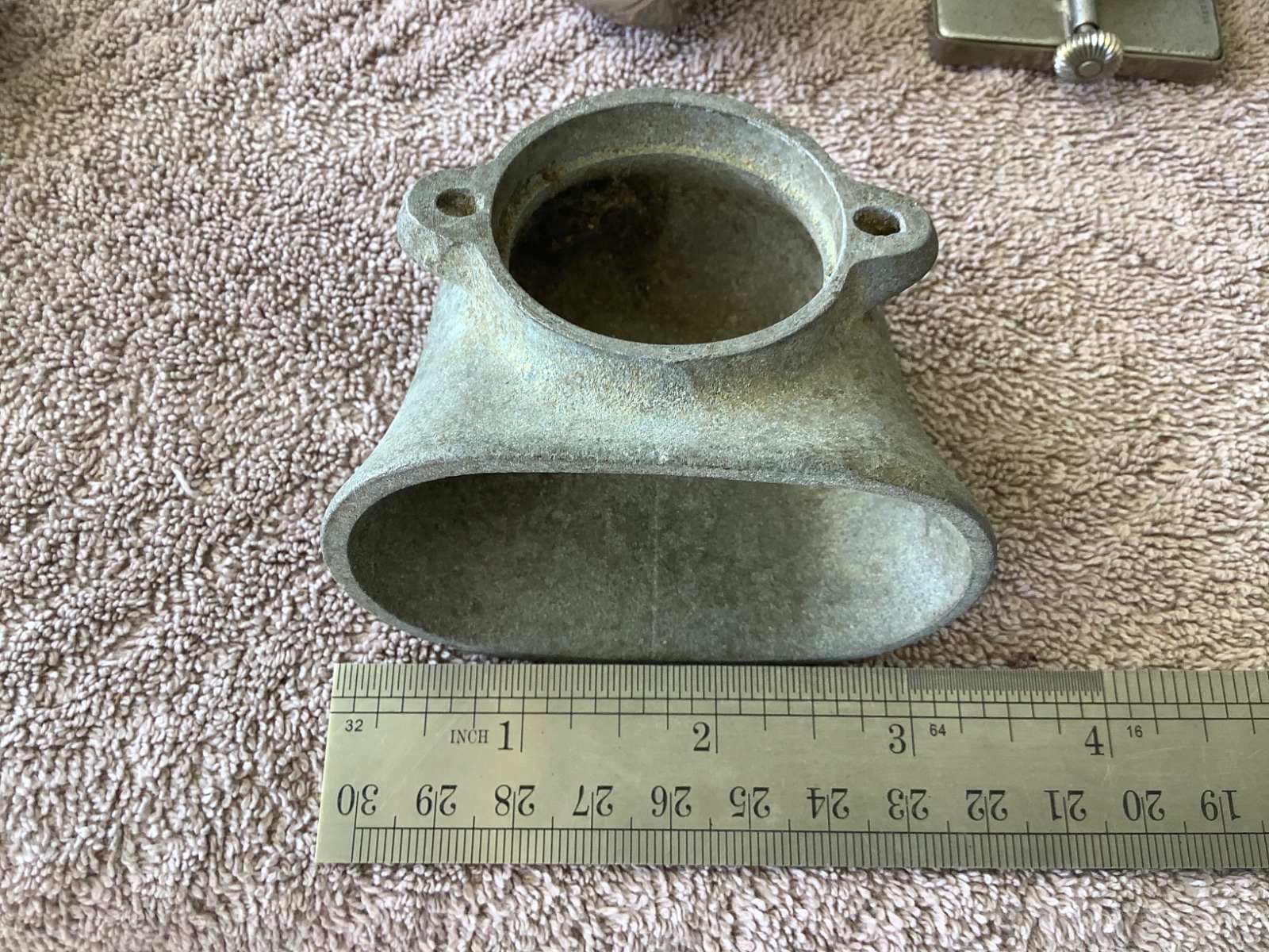 Any ideas? The little dog bone is marked Indianapolis parts Corp, inside thread is 1 3/4. The little scoop I’m thinking something carb related. Any thoughts? Thanks