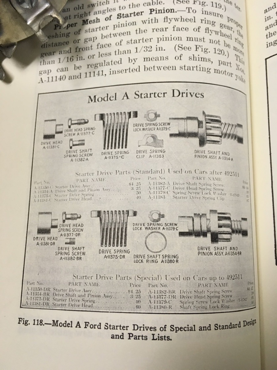 .....makes me think that the T spring may have been released for service as A-11380-R later in 1928. My car was built approximately 450 units before A492511 on October 1. After that time, the multi-disk flywheel was revised by adding a step to clear the larger diameter Bendix spring that was also used when Ford went to a single disk clutch. For cars built prior to A492511, Ford released a service Bendix drive to replace the Abell drives that proved to be trouble prone.