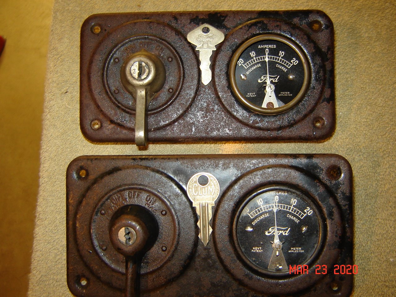 I have a very early Clum switch with the round head key. It has a lower number than the usual Ford keys. Here is a photo of a members early 1919 with the type switch I have. The dash boards were wood and covered with top? material.