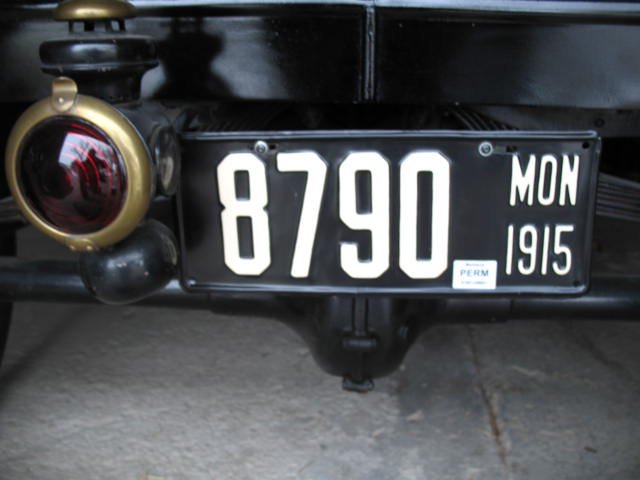 1912 California plate on my '12 Touring. This is no doubt supposed to be on the front with a solid plate on the rear. But I only have the one plate, so on the rear it goes. DMV doesn't seem to know the difference.