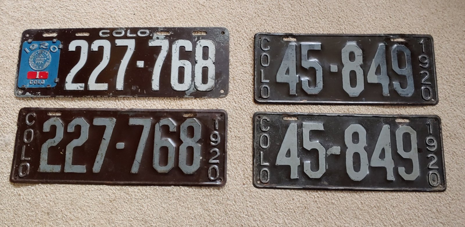 In 1920 Colorado had a welded plate the same as 1919 with a different "Seal" on it. Later in the year, the welded plates were running out and expensive to purchase (by the State) so they returned to stamping the plates as was done by most other states. The welded plates were an attempt to manufacture the plates by the State of Colorado instead of purchasing them from outside vendors.
