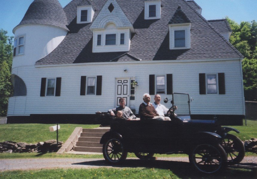 4 Generations in Model T 1919 Touring - My Dad, Me, my son and grandson in front of our family home.