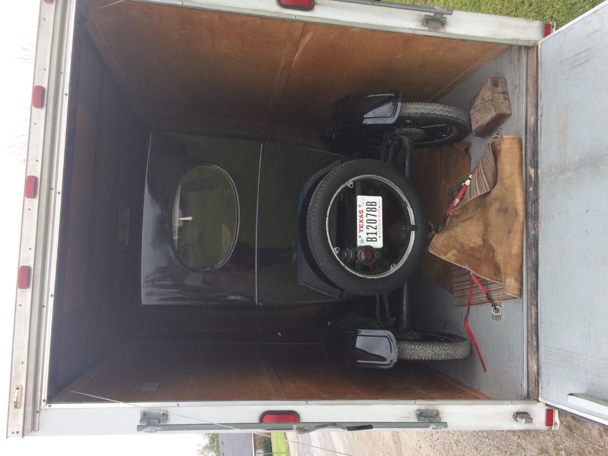 I have towed my 1912 open express & the 1920 Touring each to Virginia from New York (just under 500 miles each way) in my open 16' cargo trailer and even towing a car to a regional show it take a long time to secure including removing loose or possibly parts I gave up and bought the first of my 2 cargo trailers. They tow harder because of the wind resistance but provide a safe haven from the weather for a least 2 of the T's and save me lots of time loading, going to shows and return.