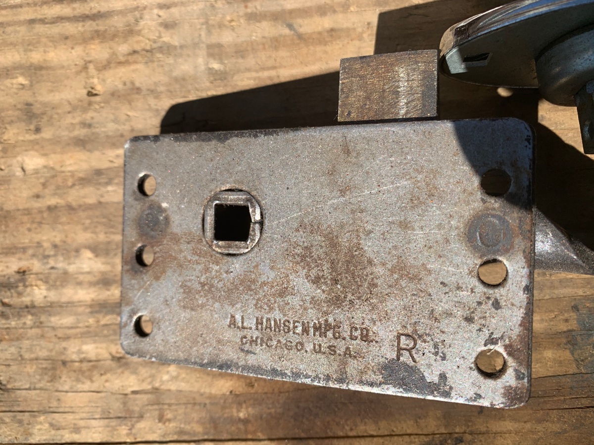 Googling A. L. Hansen door latch brought up this image with no pertinent information. While the handle looks similar to a model A handle there were many garage door and various handles that look like that. A. L. Hansen has made industrial hardware since 1920. It could be that some car maker used it.