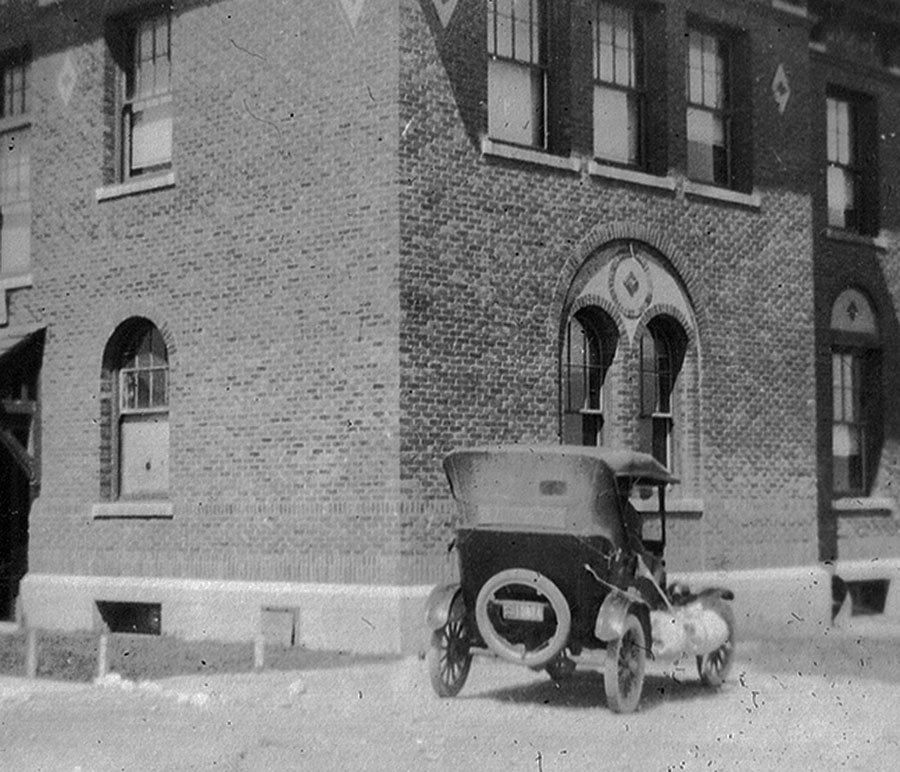"Helena Hall Helena Mont." I suppose this was Mom arriving at Carroll College in about 1929. I have seen Grampa's T loaded with camping gear like that in other photos. If that is a banner on the back curtain I can't read it. A journey from somewhere in Wyoming to Helena would have been an adventure.