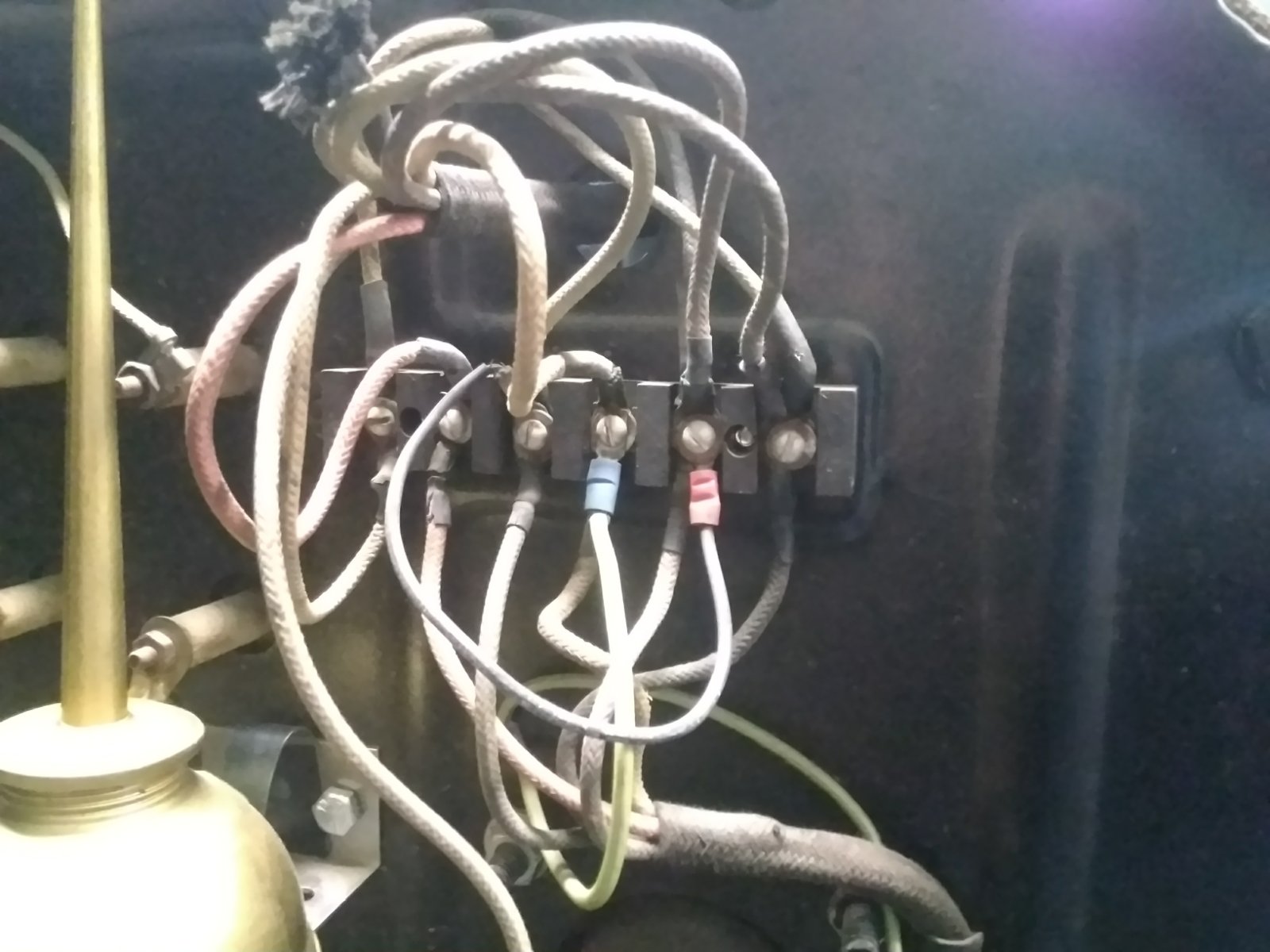 There should be just 6 wires from the Switch 7 wire loom going to the top of the terminal strip, the 7th Blue wire in the switch loom is Coil switch terminal to the coil box.