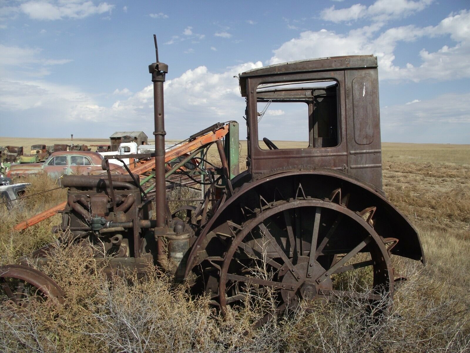 Out here in Montana where the winters are long and cold, the summers are short and hot and spring and fall are a combination of both not only on a day to day basis but an hour by hour basis a lot of the time, somebody years ago decided to make a cab for his tractor from a TT. Did a nice job on it. I think the tractor is a McCormick Deering 15-30 but I'm not sure. Somebody that knows tractors of this era probably knows.