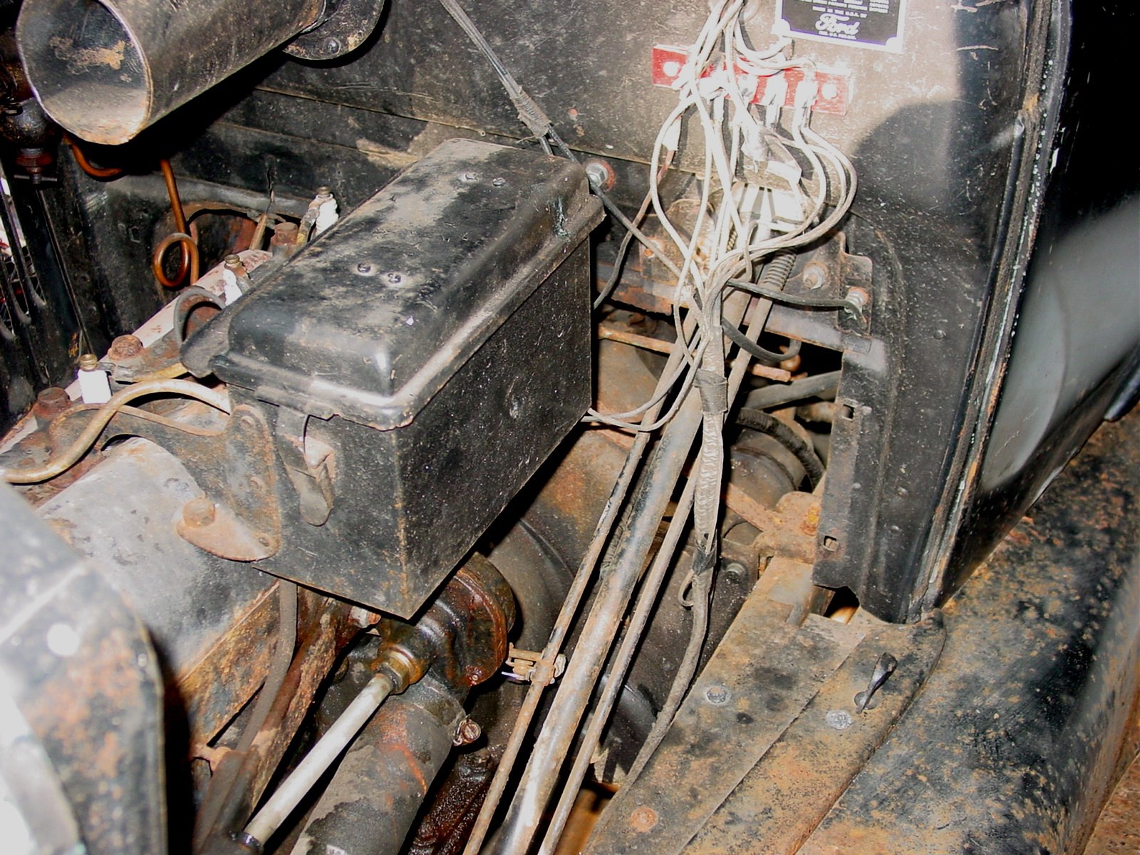 Be sure Your car has a inline fuse between the floor starter switch and the terminal block on the fire wall. some old timers hate fuses. I hate fires. and with a 93 year old electrical system You can't be too careful. first night I had My first T and turned on the headlights sparks shot out of the headlight switch. red glow in the switch and burnt smell in the night air. now all three of my Ts have fuses. I have fuse holder mounted at fire wall terminal block for ease of access in checking fuse and disconnecting it when working on electrical system. yes there is about 18 inches of un fuse wire going to the foot switch. but I take that bet as opposed to lying on Your back under the car or pulling the floor board. I disconnect the negative battery when the car is not in use as extra 100% protection.