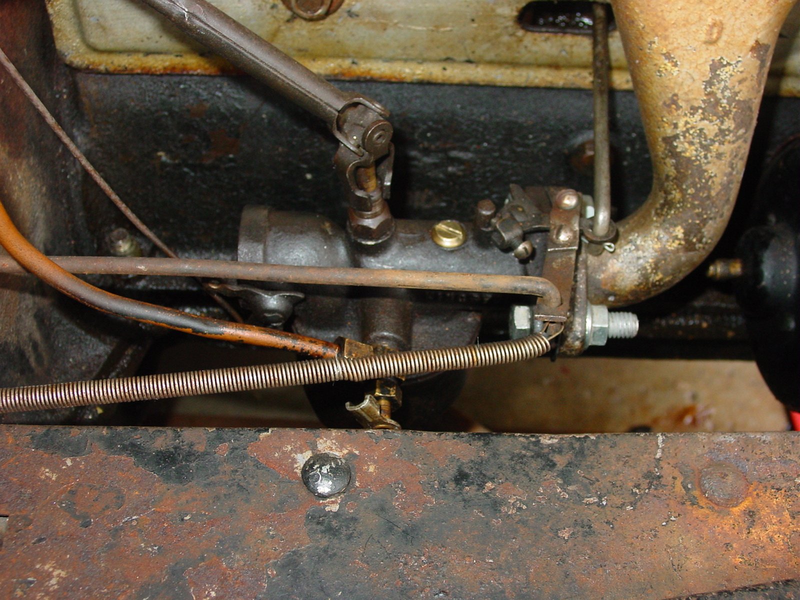 PS. I see a screen door spring and some extra linkage hooked up to the carb going straight back under the firewall. Is that for a gas pedal? If so, that was an accessory, not original to the T. Original throttle was a lever located on the steering column under the steering wheel.