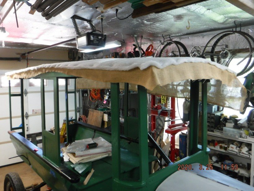 When I did the top on my hucksters truck I used some black rubber roofing like that which is used on a commercial flat roof. It was what I could find. I didn't think about padding it. I only have every other slat in place on the roof. Would that be correct? I seem to remember that was what was there when I got it.