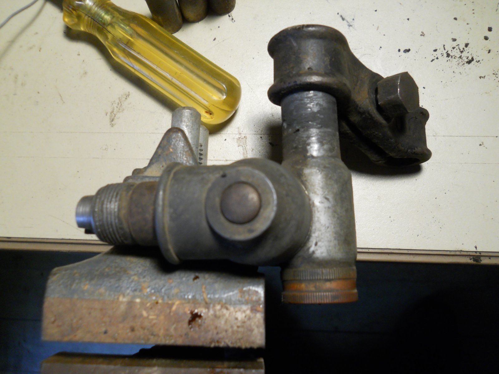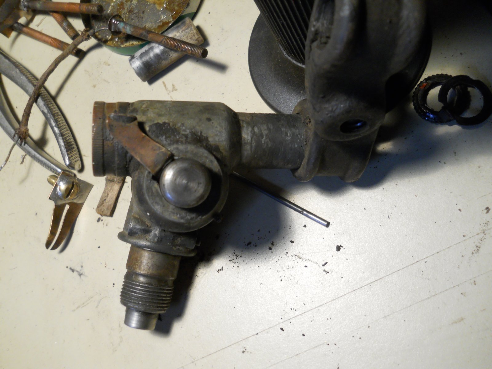 Need to put some penetrating oil on the grease cup and let it soak so I can get it off at least to start. The machined part sticking out in the 2ed from last photo is smooth no knurls or flats to turn with so it just a pressed on cap unlike the later ones that were a ring type retainer? Ouch, that maybe outside what I can do, not real good at delicate stuff, kind of clumsy when it comes to small things like this so I guess I will just soak it and wash out as much crud as I can and relube. The only way I could see me getting the cap off would be to drill a hole in it so I could use a drift to tap the pin out, or is that the only way it could be done?