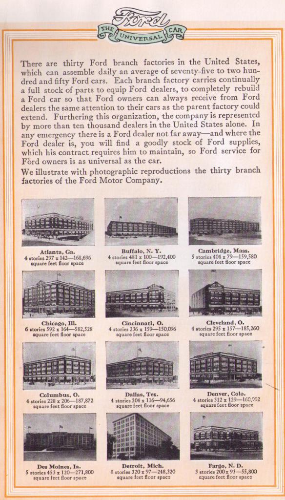 But Ford knew the only way to meet mass demands for low price car was to mfg. near the point of distribution, so even early on assembly and limited mfg branches were strategic placed near heavy buying populations.