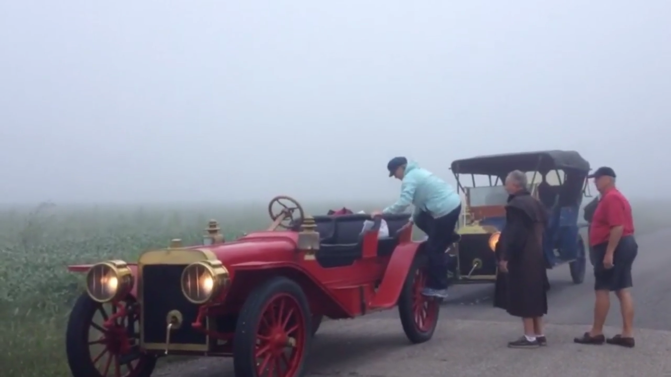 The conditions were dreadful, and the two largest and most powerful cars headed back to Dearborn from Lansing early. We had to stop to light the lamps. The late Tim Kelly, wife Joan along with Kim and Dave Shadduck made the trip in our Ford Ks.