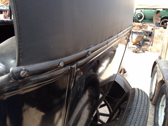 I have seen, and driven that car. Two things I failed to observe. First, it has Hastings rear windows in it. Certainly the original owner didn't install them! Another observation, I'd sure like to know the diameter of the upholstery nail on the binding for the rear bow. I think it should be 9/16". Can anyone clarify that?