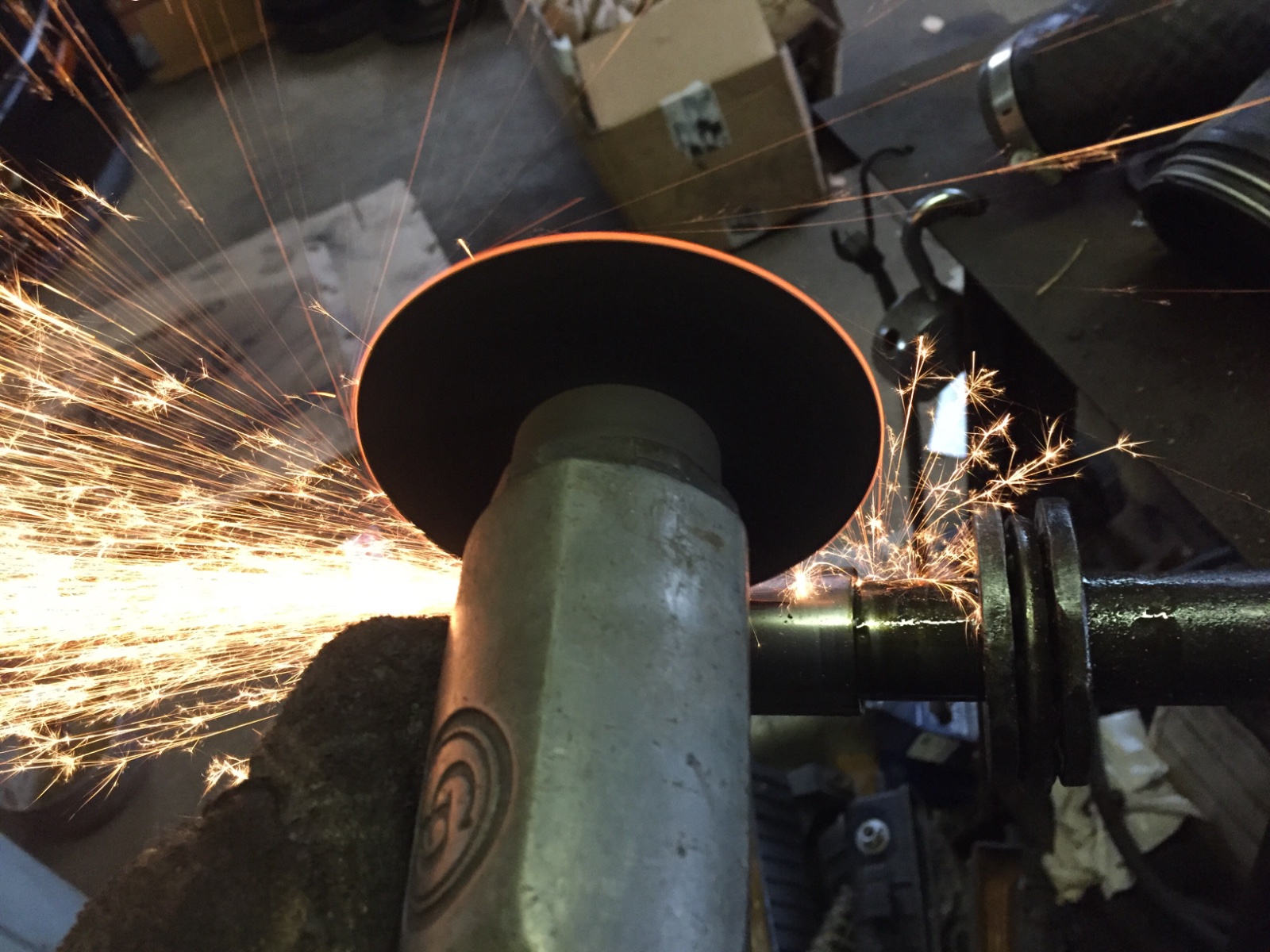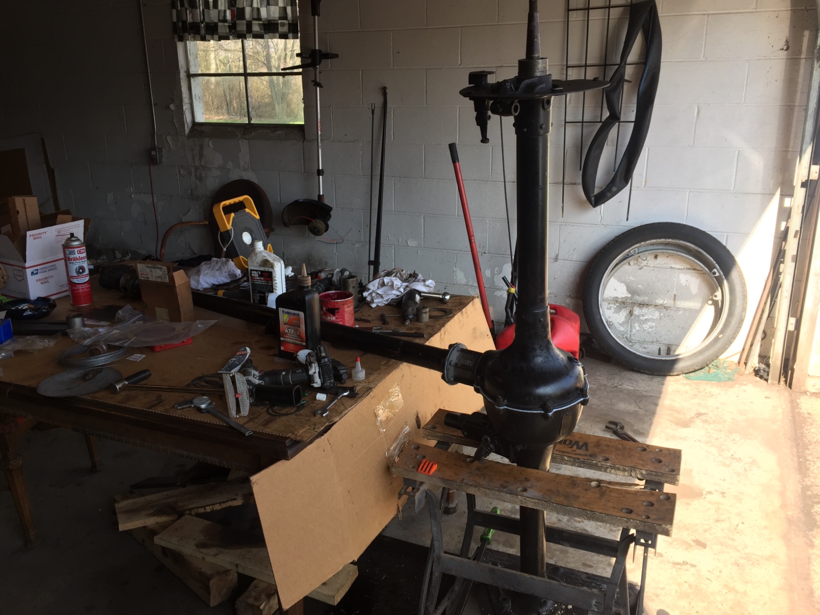 Took the u-joint off and slid the shaft out, cut the pinion sleeve off and ready for the modern bearings.