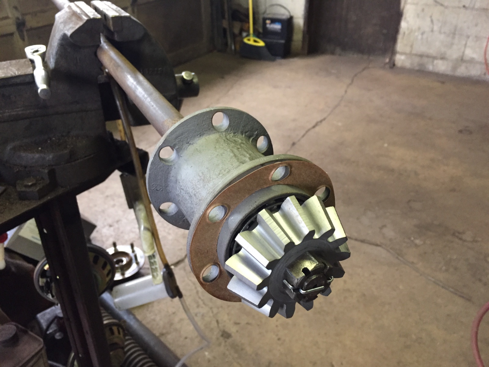 Looks kinda crunchy...had this toaster oven I was gonna pitch, and per some pro advice, I warmed up the new gear to 450 degrees before mating it to the shaft. Modern spool bearing is set with a slight preload...