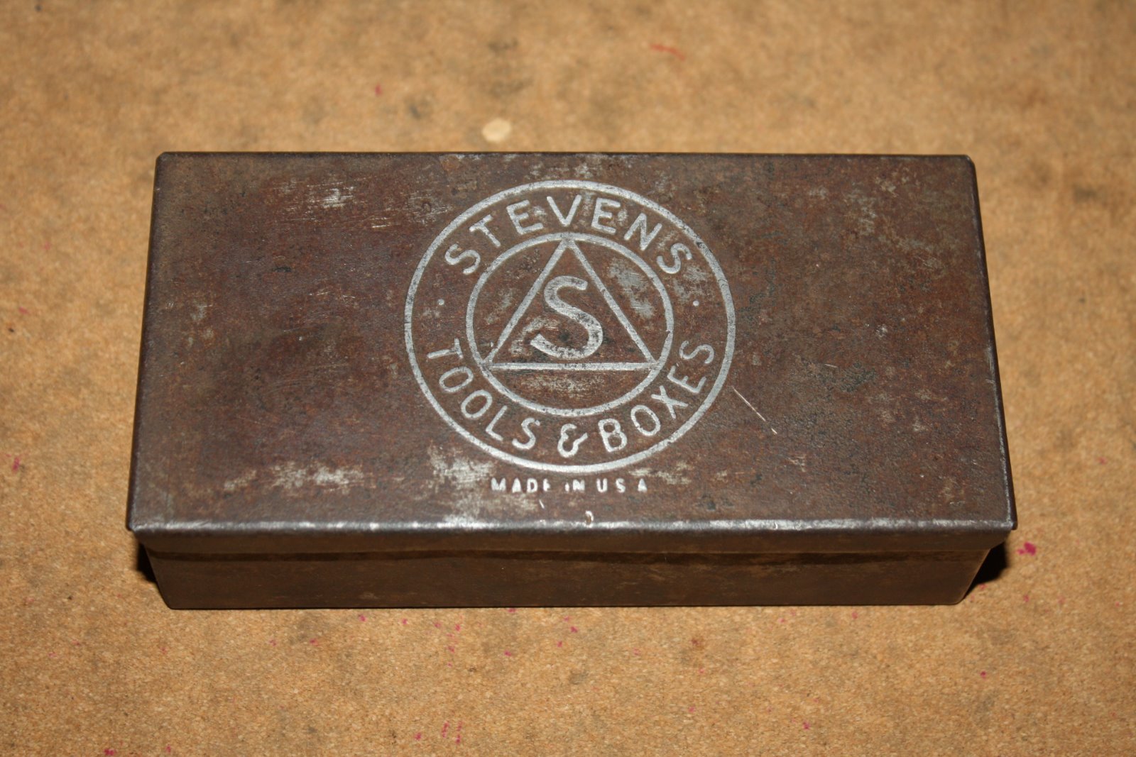 I found another Stevens tool for the collection. It is a set of "knock off" wheel pullers. It is actually a Stevens/Walden tool, but it is from the time period of the Stevens Walden buyout in 1926, so it is still a T era tool. The real neat thing is the box. I have never seen another steel box with the Stevens logo. This thing has been on E-Bay for over a year. It had a very low buy it now price but I never paid it much interest as it was listed as Walden tool. The box was very dirty so the Stevens logo did not show up well in the photos. I just happened to take another look at the auction and then noticed the logo. After I cleaned it up a little, the logo shows up nicely. Sometimes it pays to take another look ... :)