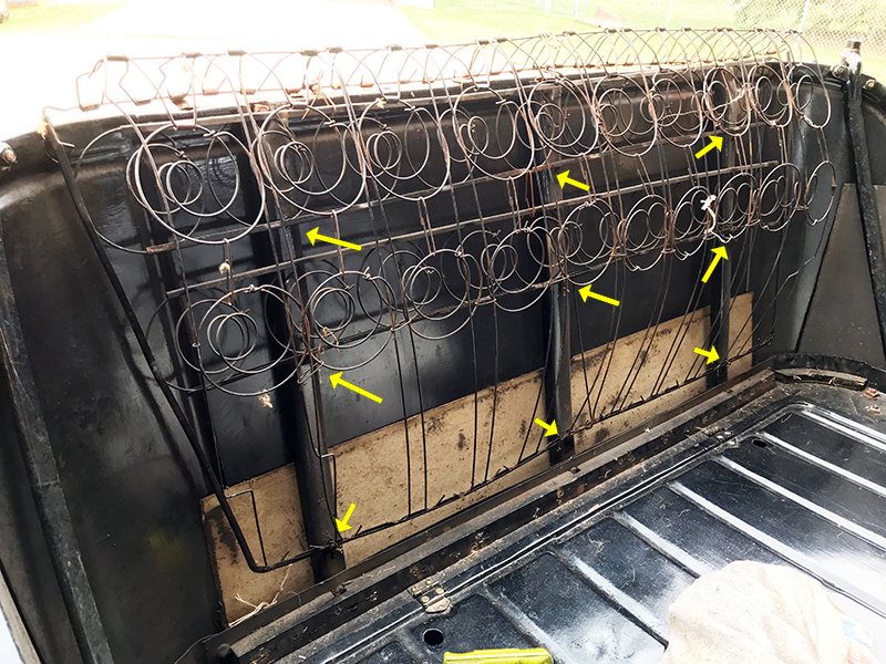 FYI: Do not use fabric to hang the springs if you are going to kept car any amount of time. Fabric can and will break letting the spring fall. Use something like metal pipe hanging tape. Dan