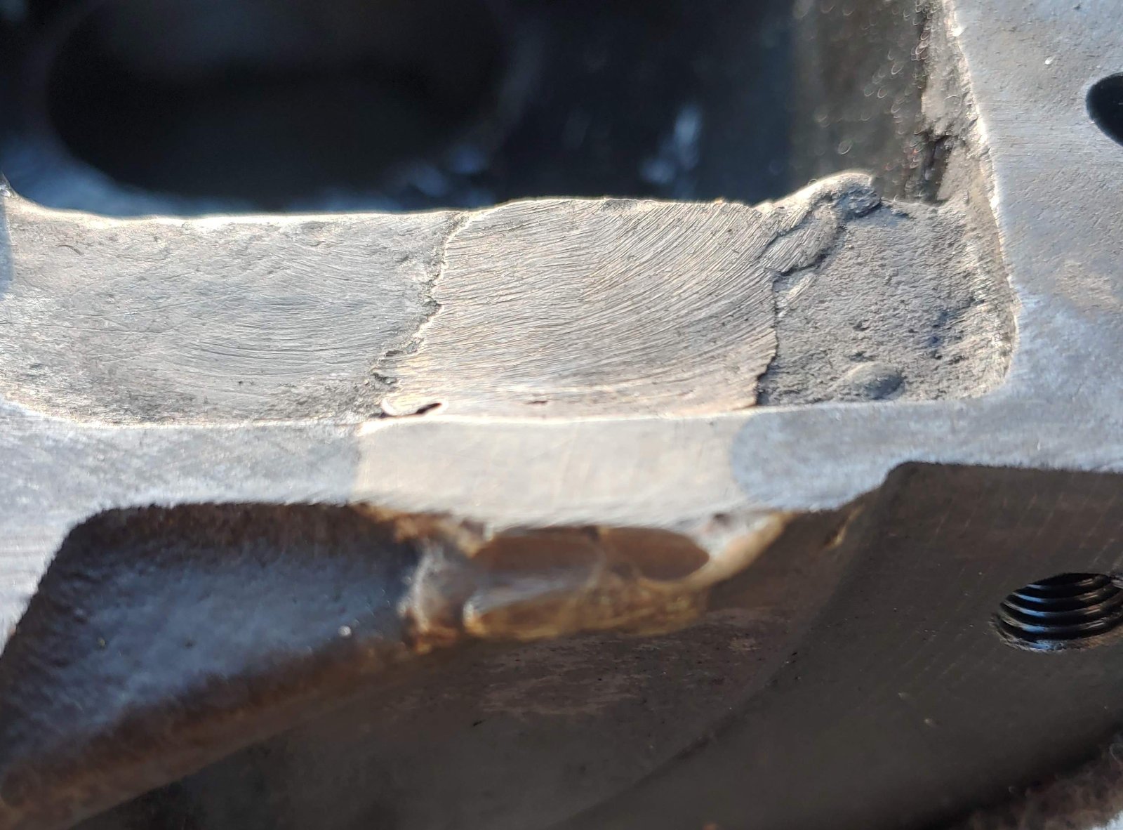 Your block likely had a broken crankshaft at one point which may be the source of the block damage/repair.