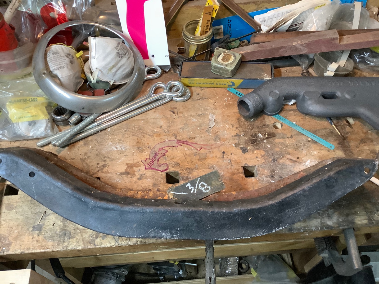 Another thread is discussing a front valance, so maybe someone can tell me what this crossmember is for. I’m pretty sure the rusty one is TT truck. As you can see, the black one is about 3/8” lower at the engine mounting point. It has a large ford script, so later, but car or truck,or.....