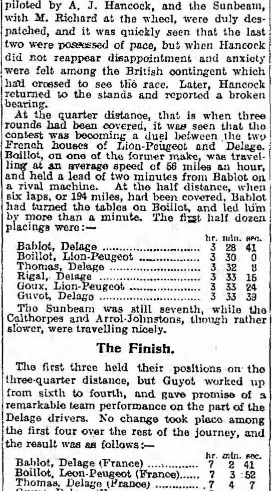 2. Georges Boillot, in Lion Peugeot, in 7 h. 3' 52"