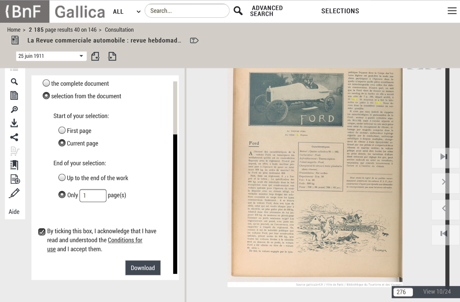 I'll then choose PDF or JPEG (JPEG is faster, but sometimes PDF are clearer). I then download image on JPG or screenshot PDF. Next I go back and download "Text." With PDF and Text, you have to choose "current page" and put in the number of pages you want text from: